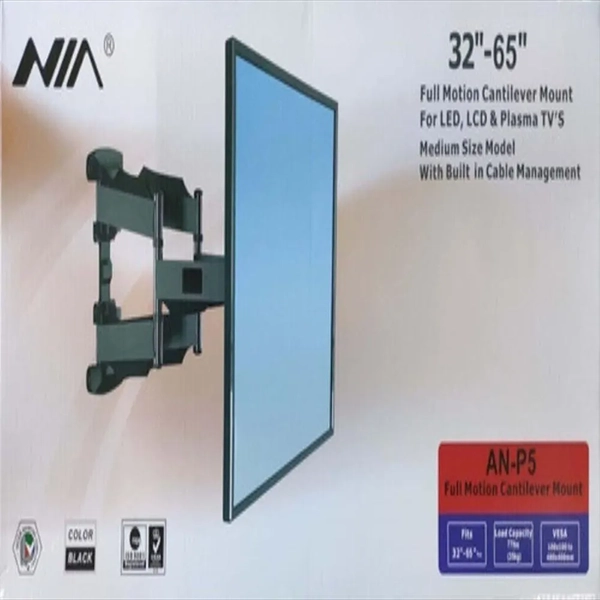 SOPORTE PARA TELEVISOR NIA AN-P5 / BRAZO MOVIBLE / 32″ A 65″ / PESO 35 KG / NEGRO / INCLUYE KIT DE INSTALACION